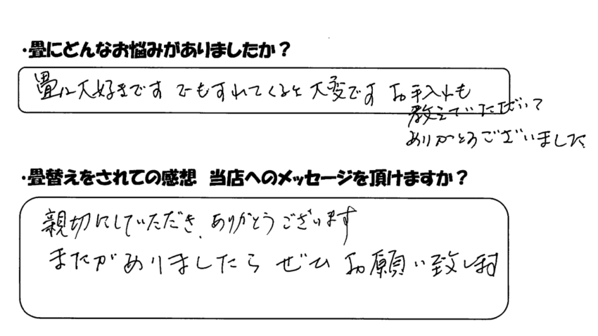畳替えをされての感想 当店へのメッセージを頂けますか?