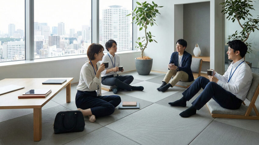 持ち運び簡単な軽量畳、縁無し畳でイベント設営・撤収を容易に。 - 社員更衣室/社内リラックスルーム